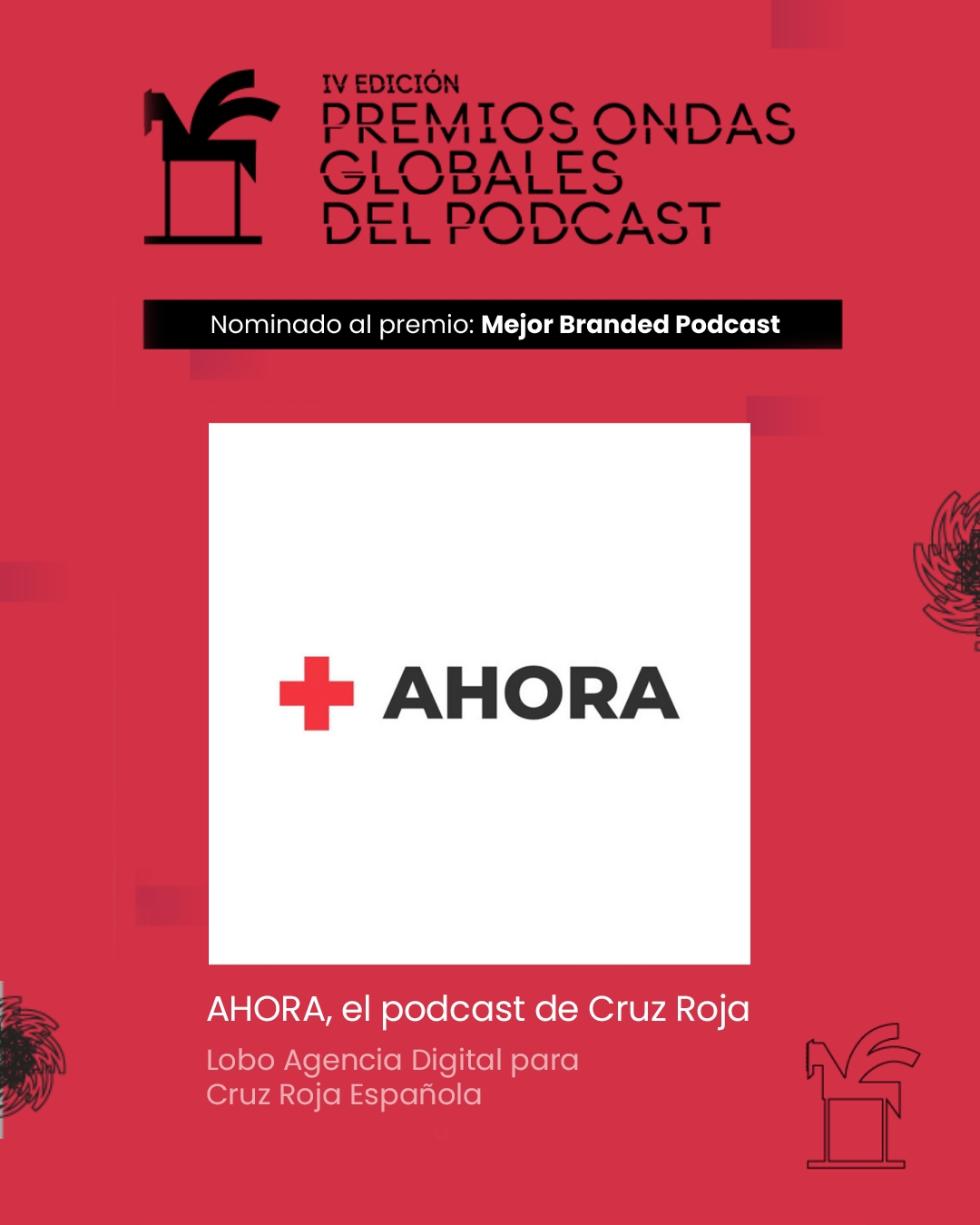 AHORA es el medio de comunicación de Cruz Roja, el mayor movimiento humanitario del mundo. Un espacio donde contar las pequeñas grandes historias que hay detrás de Cruz Roja con compromiso, honestidad y corazón. Además de noticias, reportajes, entrevistas, firmas invitadas y viñetas, uno de los contenidos que producimos desde Lobo es el podcast, un formato que nos encanta, con muchísimas posibilidades narrativas y recientemente nominado a los prestigiosos Premios Ondas del Podcast en la categoría de Branded Podcast.