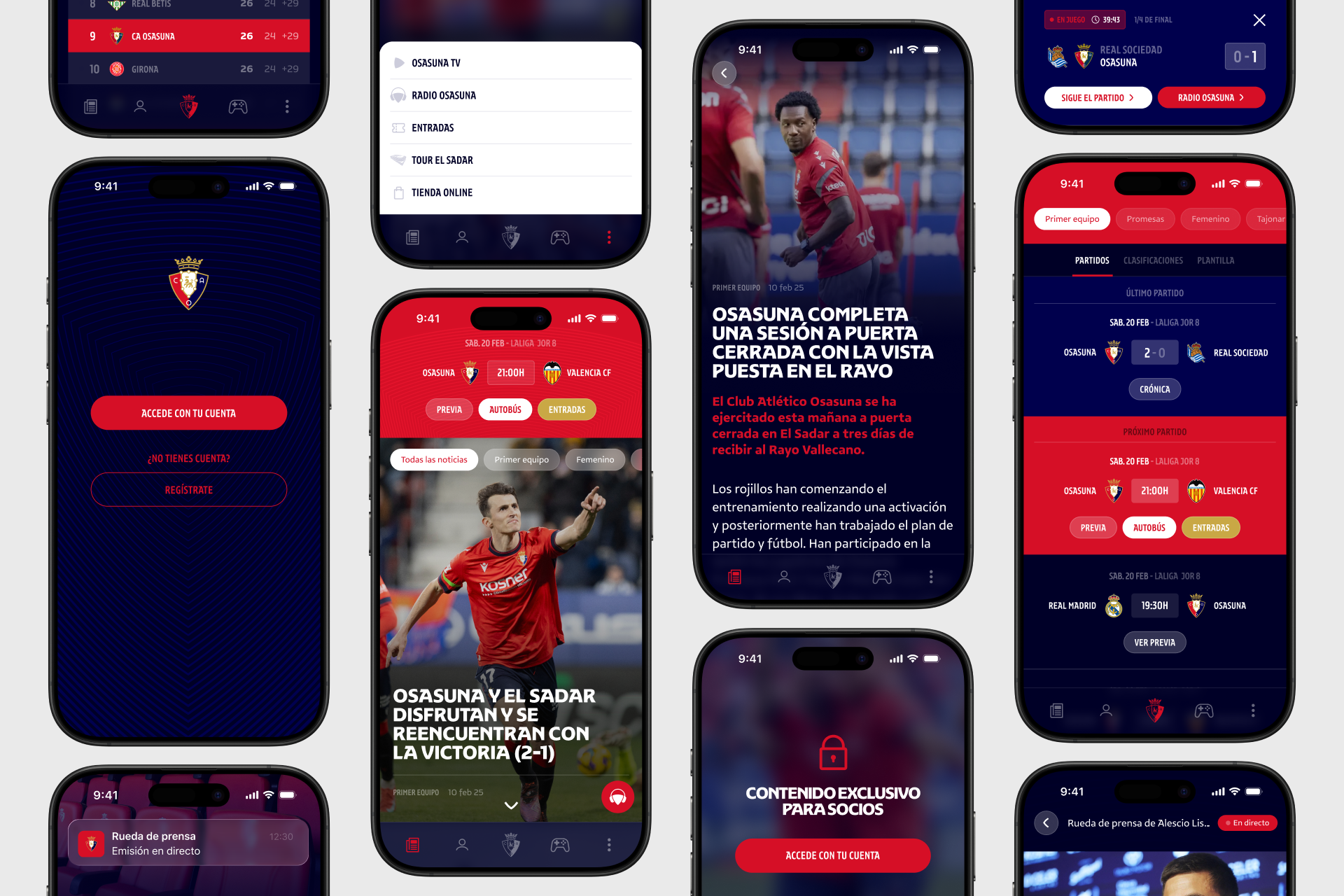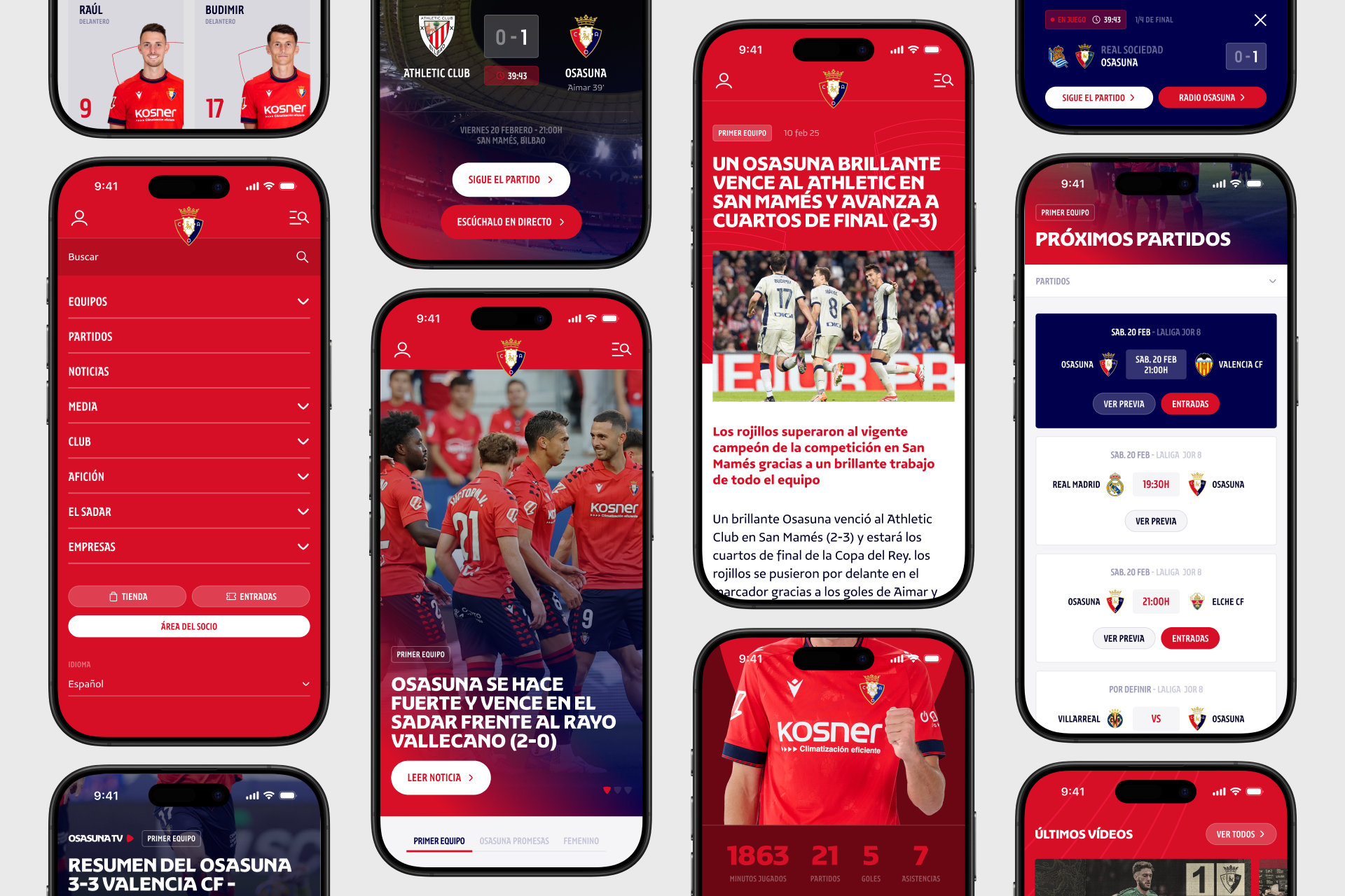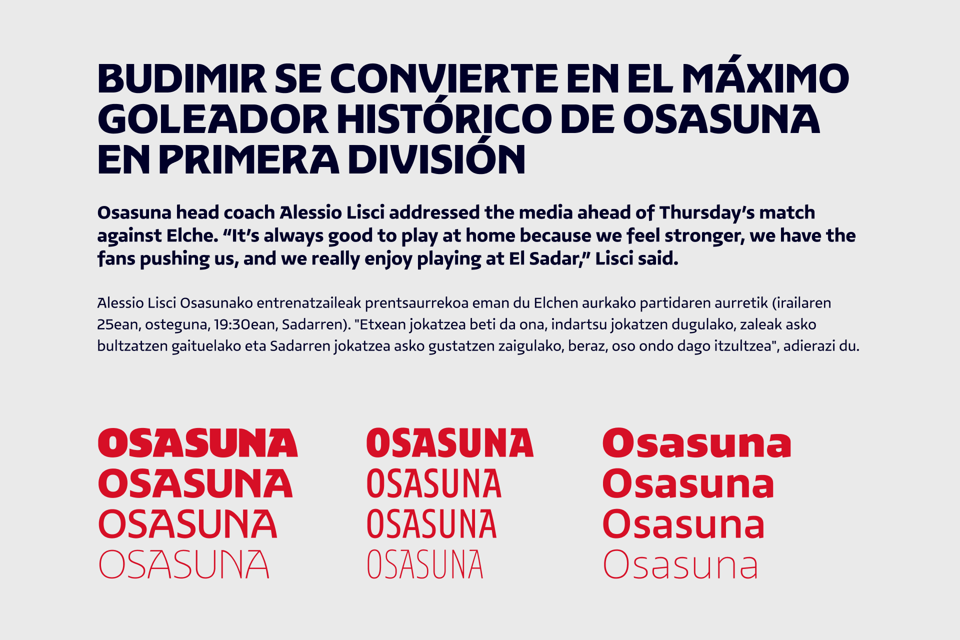 La web y app está disponible en tres idiomas (castellano, euskera e inglés), y además, cuenta con una tipografía variable desarrollada a medida para el club por el estudio navarro Ashler, lo que refuerza la identidad visual de Osasuna y ofrece coherencia en todos los soportes digitales.